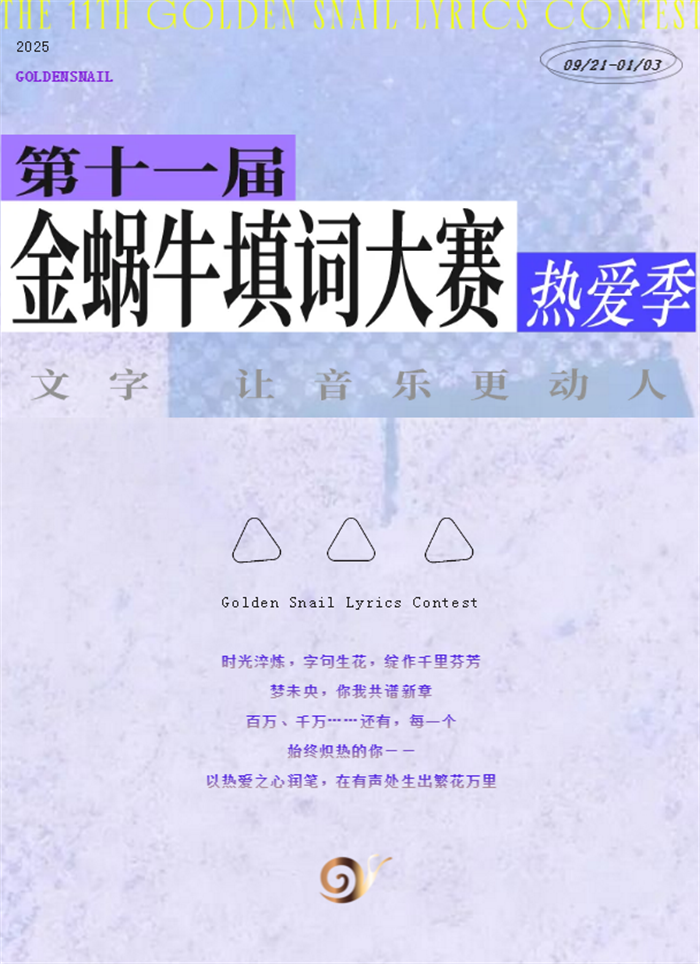 金蝸牛詞人榜(S榜)、合作單位及院校等相關分賽區(qū),投稿方式及選拔通道、推選、考核機制,以合作單位通知、公告為準。# 新聲獎作品評選 # 僅針對2024年11月31日到2025年11月31日期間發(fā)表的歌詞作品,金蝸牛簽約詞人均可通過內部郵箱投稿參賽,詳細內容將于近期在本公眾號發(fā)布,敬請關注。