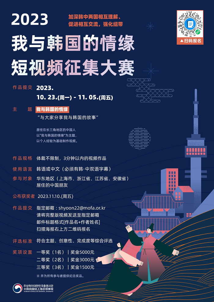 期待通過這場活動,能夠看到更多關(guān)于你和韓國的故事,讓更多的人了解和認(rèn)識韓國,也期待你的參與能為這場中韓交流活動增添一抹亮色。讓我們一起分享彼此的故事,用我們的故事鏈接中韓,深化理解,加強友誼!